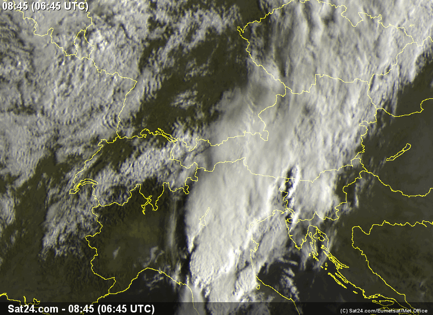 Questa mattina solo nuvole su Levico Terme, l'immagine satellitare e radar è eloquente con la sola copertura nuvolosa sul Trentino Alto Adige e le precipitazioni (peraltro scarse, nonostante i colori del radar) sul Veneto.