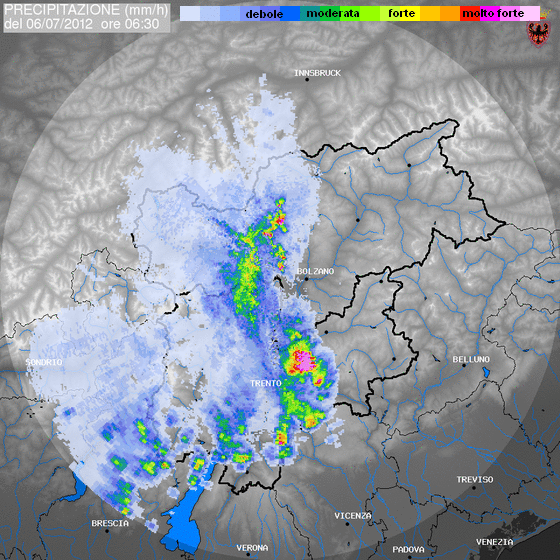 06/07/2012 - temporale a Levico, caduti 42,6 mm, temperatura "precipitata"