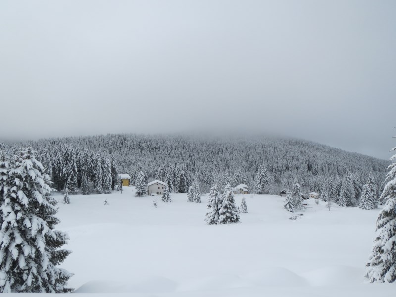 Alcune foto della neve in Vezzena questa mattina, neve che si è trasformata in pioggia al di sotto degli 800 metri.
