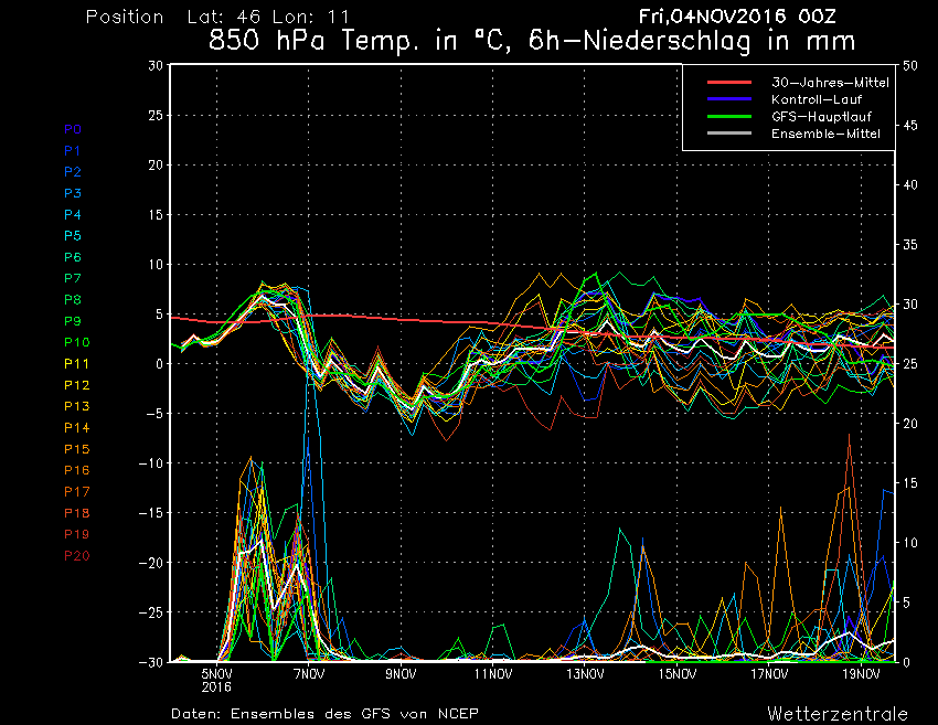 Finalmente è in arrivo una perturbazione che dovrebbe portare la prima neve a quote medio alte, preceduta da un rialzo termico dovuto allo scirocco di (a 1500 metri nella libera atmosfera si passerà da +2°C a +7°C tra venerdì sera e domenica, mentre nella giornata di domenica a fine evento dovrebbe scendere a -1°C). Nei giorni successivi fino al 10 novembre, bel calo termico in quota con temperatura di -5°C nella libera atmosfera a 1500 metri circa.