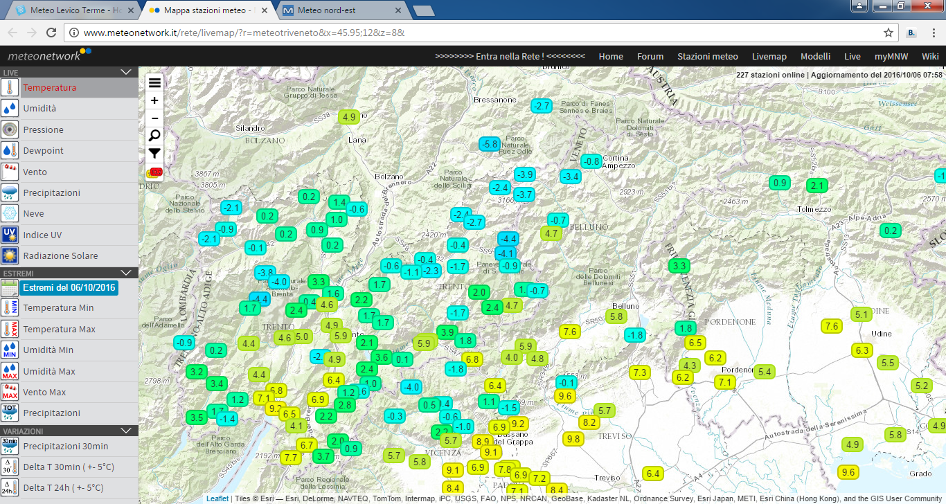 Una vasta circolazione depressionaria in quota (goccia fredda), ha portato un repentino calo delle temperature e qualche precipitazione (2,1 mm a Levico), soprattutto sulle Prealpi. Il raffreddamento ha portato anche un po' di neve sui settore meridionali.
