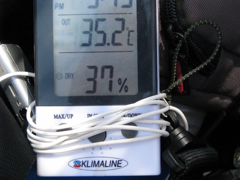 Dopo una dormita di quasi 11 ore per recuperare la “non dormita” del primo giorno, ci alziamo e dopo colazione scendiamo in spiaggia, temperatura a +35°C in spiaggia già alle 11.00, temperatura dell’acqua a ben +30,2°C e temperatura della sabbia a +61,4°C, infernale.