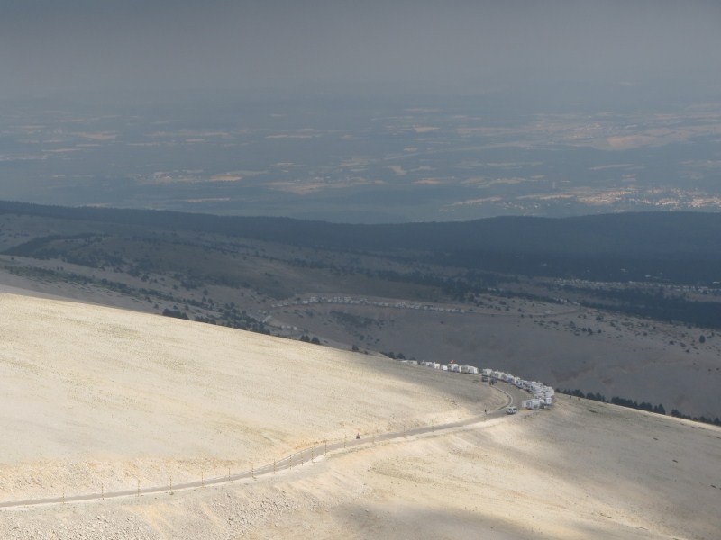 Scendiamo dal Mont Ventoux e lungo la strada troviamo centinaia di camper parcheggiati in attesa del Tour de France, che passerà di qui fra 3 giorni, domenica 14 luglio (festa della Repubblica Francese). A