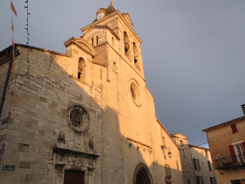 Scendiamo a cena in centro a Sault (ci sono solo tre ristoranti), mangiamo da O'Pichoun, purtroppo al chiuso visto che pioviggina ancora, prendiamo il menù gourmand, con torta salata au chevre (formaggio di capra) e per secondo agnello e dessert tiramisù al lampone, come vino un ottimo Cote du Mont Ventoux (14,5 gradi), millesimato, fantastico.