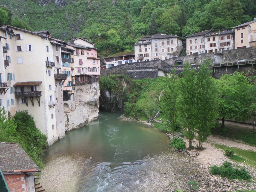 Dopo l'ultima colazione al "Castello" (questa volta non da solo ma con una simpatica coppia di Lione con la loro figlia), parto alla volta di Pont en Royans per scattare qualche foto, come da tradizione, alle Maisons Suspendues (case sospese) sopra la Bourne. Purtroppo la giornata non è delle migliori e piove molto forte. Il bancomat del Credit Agricole di Pont mi ingoia la tessera bancomat.