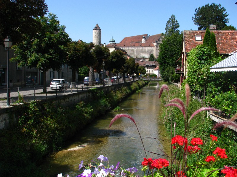 Al primo paese mi fermo a prelevare 50 Franchi Svizzeri (42 Euro con le commissioni) per il pranzo, ma purtroppo anche volendo non riuscirò a spenderli. Arriviamo a Porrentruy e sembra che sia caduta una bomba atomica (è vero che i 36°C non aiutano), ad ogni modo è tutto chiuso, neanche un ristorante, troviamo un bar dove però non fanno panini e ci limitiamo a bere una birra alla spina, visitiamo rapidamente il centro con un buco nello stomaco (gli unici due negozi aperti sono due edicole….). Nel bar leggo un quotidiano svizzero, tra le varie notizie "Renato Gattuso fa la fortuna del Sion, grazie ai suoi valori culturali ed umani boom di abbonamenti" - "Lo sperma svizzero va a ruba" articolo su quanto sia prezioso lo sperma dei tori svizzeri, i quali prima vengono eccitati guardando i loro "fratelli" riprodursi e poi li fanno montare su una specie di toro, ops mucca meccanica e ne prelevano lo sperma.... ce ne sono di lavori del cazzo pensando all'imbottigliatore.