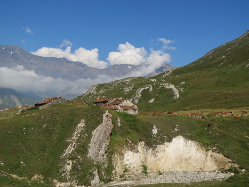 Tornando al diario di oggi, arrivati in fondo alla Diga (si tratta di una diga non in cemento ma in materiale naturale, scarti di cava – barrage a poids viene definito in francese) decidiamo di percorrere una strada che porta in una valle a sud del lago, proseguiamo per oltre 8 km su strada asfaltata e poi sterrata, che proseguirebbe ancora a dire il vero e raggiungiamo i 2183 metri del Colle del Piccolo Moncenisio (fino a qualche tempo fa si pensava che Annibale fosse passato di qui con i suoi elefanti).