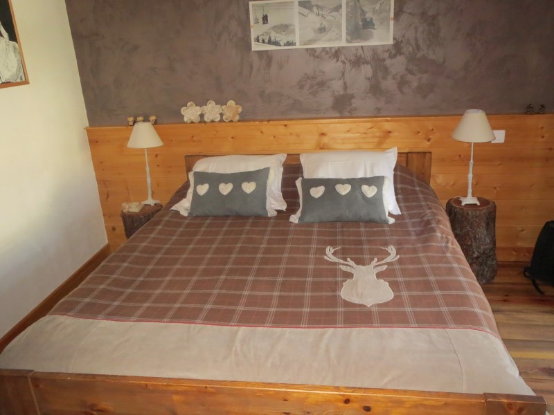 Dopo la nostra gita fuori percorsi "scendiamo" al colle del Moncenisio e da lì in meno di 20 km arriviamo a Bessans passando da Lanslevillard. Bessans è un paese di 350 anime, a quota 1730 metri, ho prenotato camera e colazione in una chambre d'hotes Chez Mamie Anna, ci accoglie una signora bionda (niente male... eh eh ) che ci illustra in maniera sintetica ma efficace tutti i servizi della struttura. La camera è davvero carina, tutta in legno e pietra con un sacco di cuoricini. ovunque. La gestrice della struttura, dopo mio interrogatorio, mi racconterà che qui cadono in media 9 metri di neve in inverno e che la zona (come avevo notato, oltre ad aver notato che è un sito freddo su altopiano) è molto soggetta a valanghe, tant'è che d'inverno c'è un sistema computerizzato per farle cadere con dei palloni a gas (idrogeno se ho ben capito), tra l'altro mi ha spiegato che la montagna davanti all'hotel viene colpita d'inverno con un cannone per far cadere le valanghe, i "proiettili" vengono sparati dal fondovalle, fantastico. Facciamo un giro in paese, e faccio un po' di acquisti in un negozio tipico, il nome è un programma "l'angolo d'inverno", in particolare mi piace una tovaglia natalizia per la nostra cucina, che nonostante la contrarietà di Francesca acquisto ugualmente.