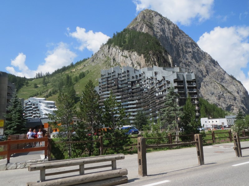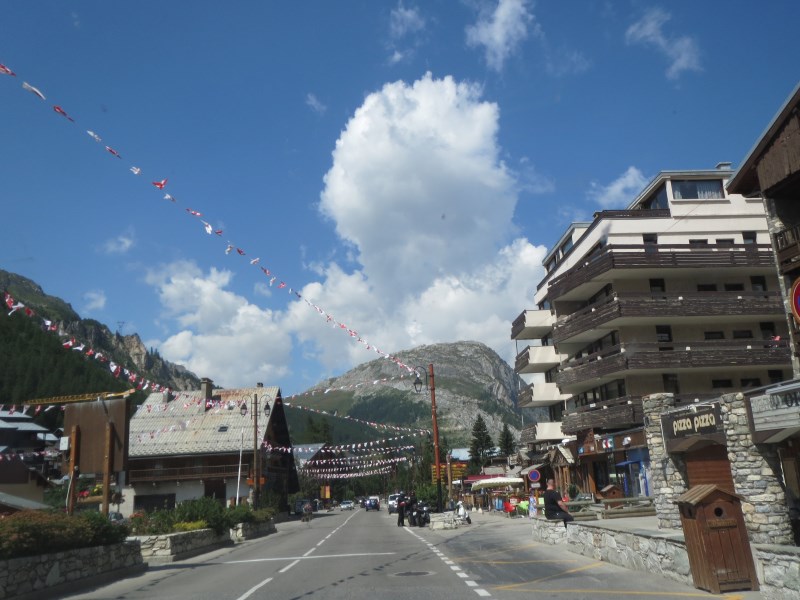Risaliamo in macchina e dopo una quindicina di km raggiungiamo i 2770 metri del valico più alto di Europa, ovvero il Col de l'Iseran. Da lì scendiamo nella famosa stazione di Val d'Isère che ha una parte caratteristica con tutte le case in pietra ancorché moderne e poi una parte orribile con le costruzioni moderne che arrivano a 14 piani.