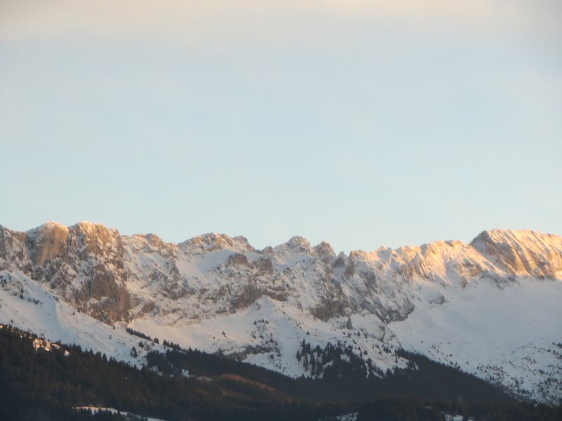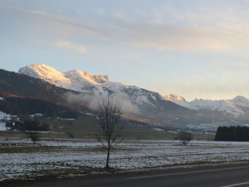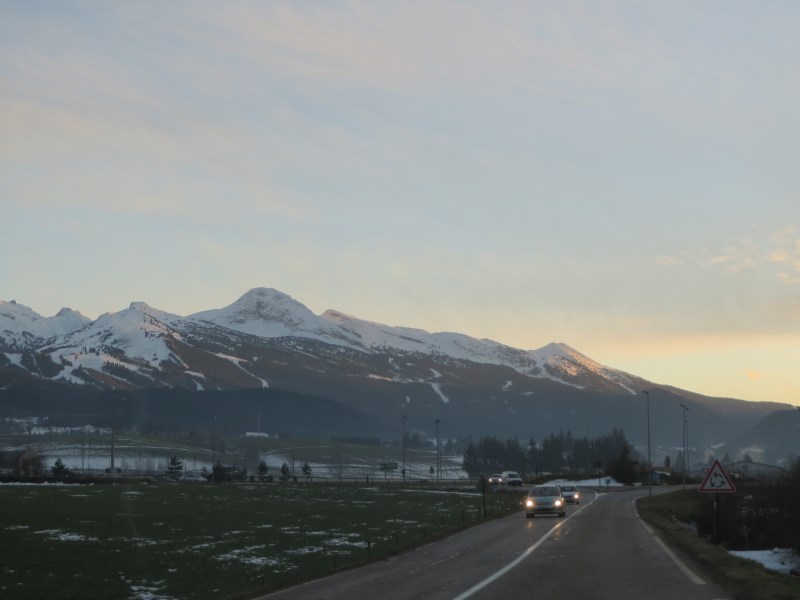 Prendiamo poi l'autostrada fino a Grenoble e da lì saliamo sull'altopiano che porta a Lans en Vercors e Villard de Lans, dove godiamo di un bel tramonto sulle montagne.