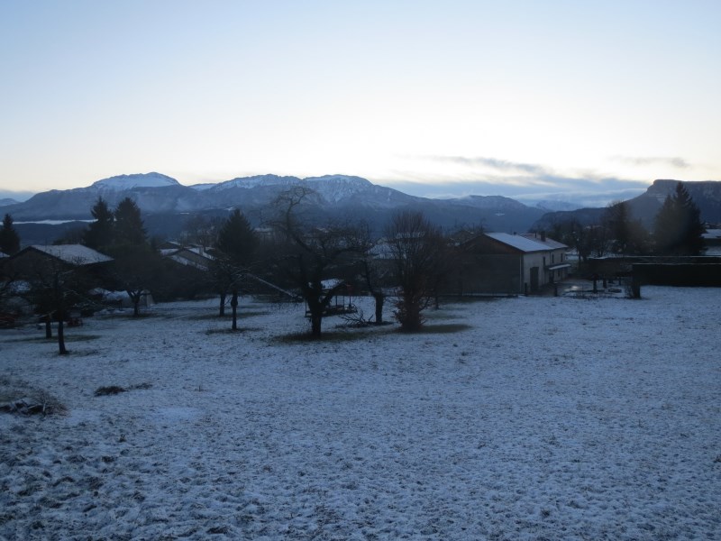 Ci svegliamo a Charnecles con una bella sorpresa, durante la notte il forte vento ha portato aria fredda e la temperatura è calata di 7°C da ieri sera portando circa 3 cm di neve.