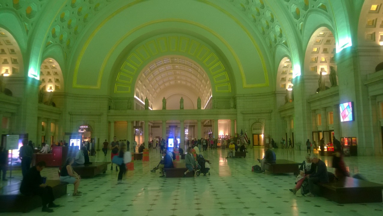 Arriviamo alle 18.30 alla Union Station, stazione di Bus e Treni bellissima, ma subito fuori incontriamo subito una decina di homeless e una pantegana grossa come un bassotto, chiamiamo un Uber  e con lo smartphone sbaglio indirizzo, ci sono due hotel con lo stesso nome sulla stessa strada, uno a NE e uno a NW, nessun problema, l'autista si gira e ci porta a quello giusto, l'Homewood Suites by Hilton, una  suite spettacolare con vista su Capitol Hill e l'obelisco.
