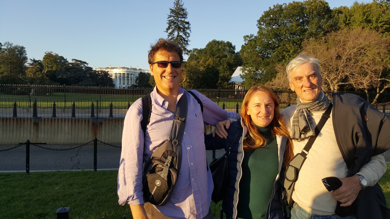 Dopo la National Gallery scendiamo a piedi lungo il Mall fino al Washington Monument, e da lì raggiungiamo in breve tempo la White House, la Casa Bianca, dove scattiamo alcune foto, alle spalle dell'albero di Natale Nazionale. Con il binocolo osservo il tetto della Casa Bianca, dove ci sono diversi cecchini con carabine con binocolo.