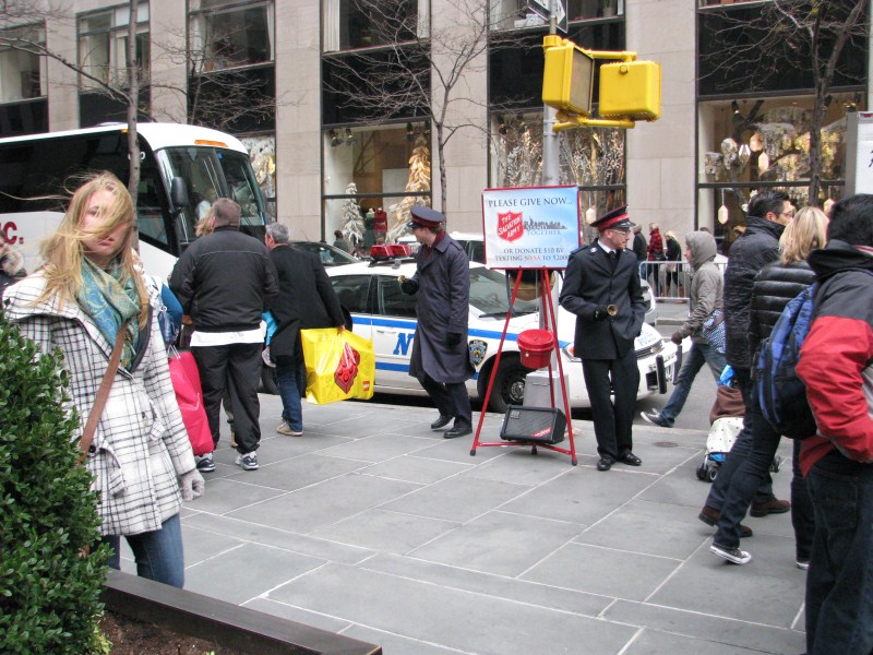 Da lì percorrendo la Fifth Avenute, arriviamo al Rockfeller Center dove non si può non vedere il meraviglioso albero di natale inaugurato pochi giorni fa, con la pista da pattinaggio ai suoi piedi. I negozi sulla Quinta Strada sono di un lusso sfrenato, in particolare quelli relativi a gioiellerie come Cartier o Tiffany, in quest’ultima entriamo per fare un giro, non ci sono i prezzi esposti, l’unica cosa che ha un prezzo sono dei piccoli orecchini da 11.500 $, c’è molta gente che guarda i gioielli e se li fa vedere, notare che la gioielleria è disposta su 6 piani.