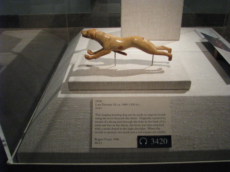 2) Il giocattolo fatto a forma di cane risalente alla civiltà Egizia (1400 a.c.) perfetto in ogni dettaglio e con meccanismi automatici per muovere la bocca