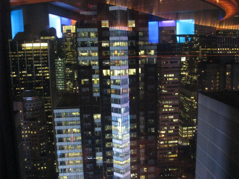La crociera termina alle 18.00 circa, da lì andiamo nuovamente in Time Square, e lì saliamo al 48° piano del Mariott dove c’è il ristorante The View,spettacolare, una vetrina su Manhattan, è un ristorante circolare posto all’interno del grattacielo ed il bello è che ruota su stesso per 360°C in circa un’ora, da lì si ha una vista strepitosa su quasi tutta Manhattan fino al New Jersey. Il ristorante è diviso in due piani, il piano inferiore ospita il ristorante con menù da 79 $, il piano superiore il menù da 37 $ a buffet, oppure il menù dolci e formaggi da 19 $ oppure semplicemente si può bere qualcosa, noi optiamo per il buffet.