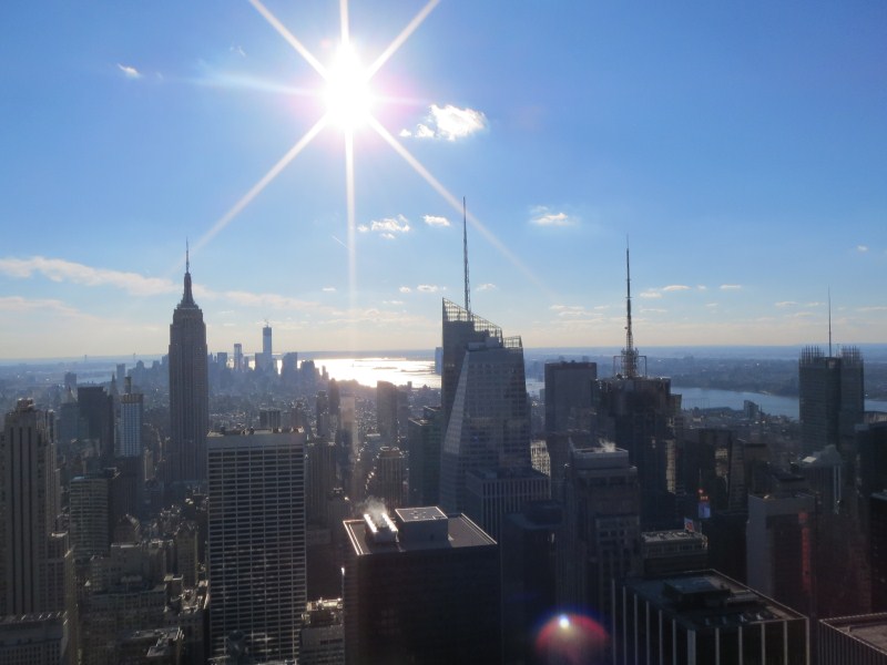 Saliamo verso nord ed entriamo al Rockfeller Center, dove saliamo al 70esimo piano del Top of The Rock, un grattacielo storico di New York (in realtà è un complesso di 19 edifici, costruito dai banchieri/petrolieri Rockfeller), la vista è strepitosa anche per via della bella giornata, scattiamo tutta una serie di foto indimenticabili. Dimenticavo, per salire al 70esimo piano in ascensore si impiegano 35 secondi, ed il soffitto è trasparente… spettacolare . Il Rockfeller Center è ricordato anche per la famosa foto in cui ci sono gli operai che fanno colazione su una putrella d’acciaio nel vuoto con alle spalle Central Park.