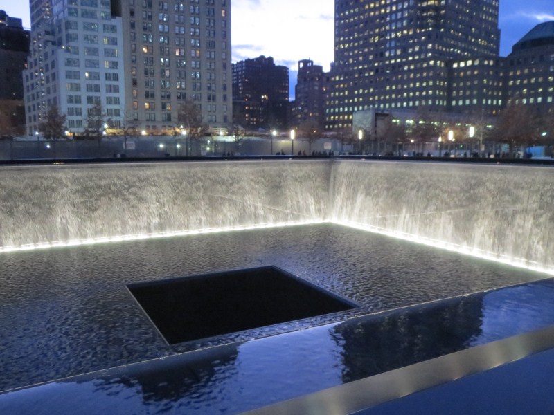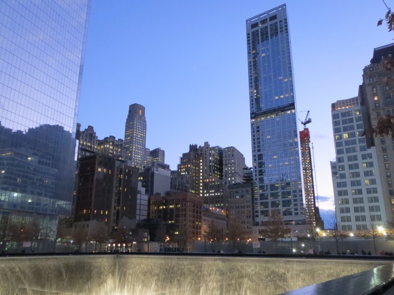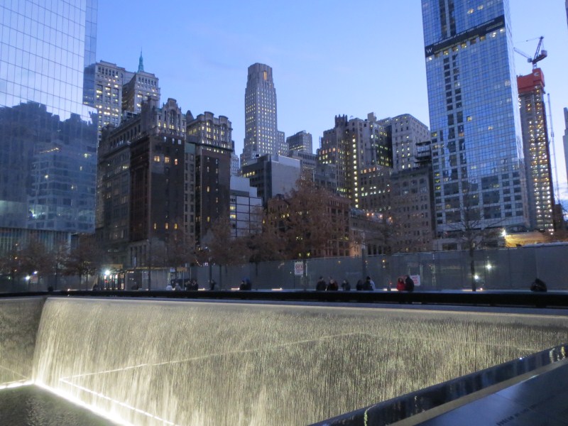 Scesi dal Rockfeller Center, pranziamo da Hale & Hearty, da lì dopo una foto dall’interno alla famosa pista di pattinaggio al Rockfeller Center, prendiamo la metro e scendiamo fino a Ground Zero (tra l’altro realizzo oggi che la polizia vista l’altro giorno, compresa la Swat e poi anche l’esercito, era conseguenza dell’omicidio occorso l’altro giorno a Time Square), dove mi separo da Francesca per visitare il Memorial dell’11 settembre 2001. L’emozione è fortissima nel vedere il luogo di così tanta tristezza, ricordi legati ai fatti dell’11 settembre 2011 ovviamente, non ho prenotato la visita, ma è possibile farlo sul posto, non si paga per entrare ma è consigliata una donazione, inizio la visita alle 16.30 dopo aver fatto il consueto controllo documenti. La visita al memorial ti coinvolge, non so come ma mi viene in mente il nome di uno dei vigili del fuoco morti nelle Torri l’11 settembre 2001 (ne sono morti 343 quel giorno), avevo notato il suo nome alla caserma dei pompieri del 1°distretto due giorni fa, la lapide commemorativa della caserma agli  11 morti di quella caserma era stata dedicata presumo dalla moglie al pompiere William Henry, cerco allora il nome nei computer a lato del memorial e lo trovo, da lì si può anche stampare una cartina che indica dove trovare il nome inciso nel memoriale, cosa che faccio per poi raggiungere la scritta incisa nel memoriale, la cosa mi lascia un po’ scosso.
