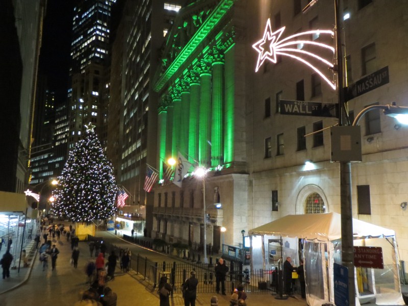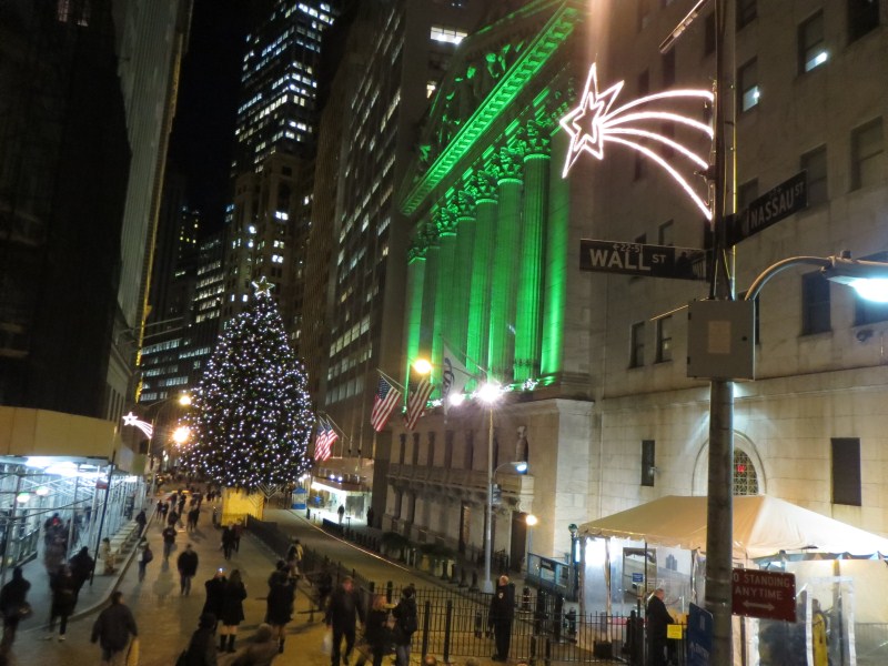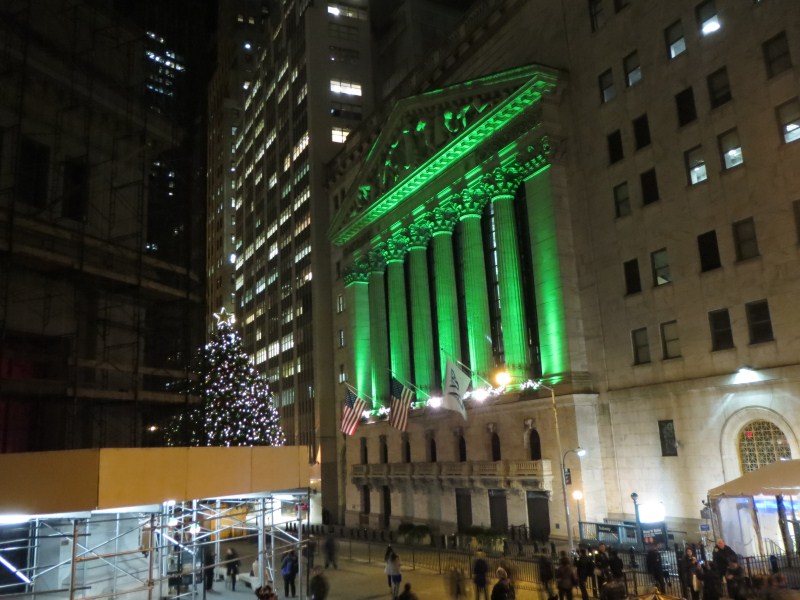 Dopo la visita (tira un vento freddissimo), visito lo shop center velocemente e raggiungo la chiesa di Trinity Church Wall Street, lì mi sorprendo nel vedere decine di homeless che dormono, anzi, vivono sul marciapiede antistante. Raggiungo quindi Wall Street dove incontro Francesca (per caso,l’appuntamento era per le 6 da un’altra parte), lì scattiamo un po’ di foto alla Borsa (NYSE) ed al posto dove passava il famoso muro (ci sono ancora le basi delle palizzate di legno). Prima di andare a prendere la metro, fotografiamo una palestra vicino alla borsa, dove un sacco di gente sta facendo fitness.