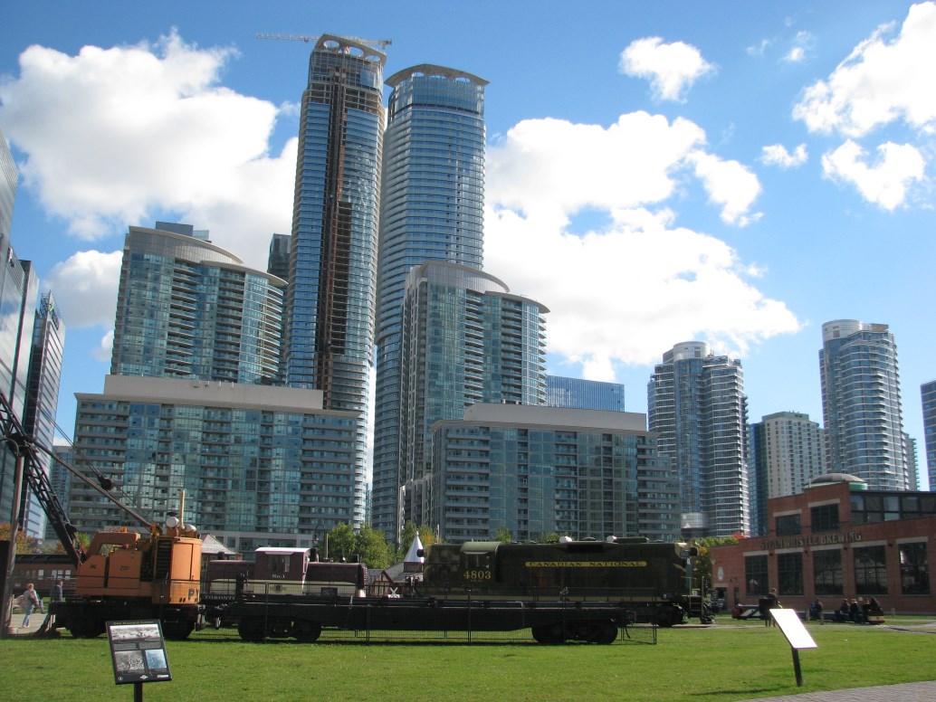 Dopo essere ridiscesi facciamo un giro in downtown sotto i grattacieli e guardiamo un po' di vecchie locomotive nel museo sempre sotto la CN Tower, dopodiché ripartiamo alla volta delle Niagara Falls. La prima ora di viaggio percorriamo poco più di 15 km, un traffico infernale a causa anche di uno svincolo chiuso, ma anche dopo aver lasciato Toronto il traffico è davvero intenso, in realtà l'area urbana è estesissima oltre 640 km quadrati.
