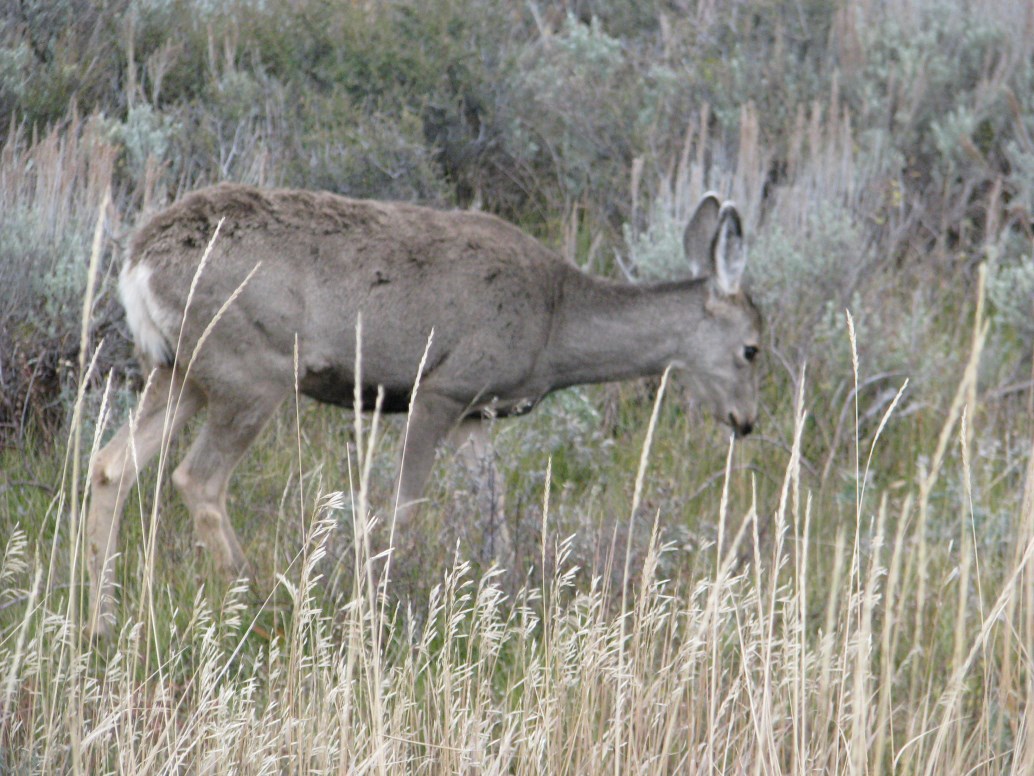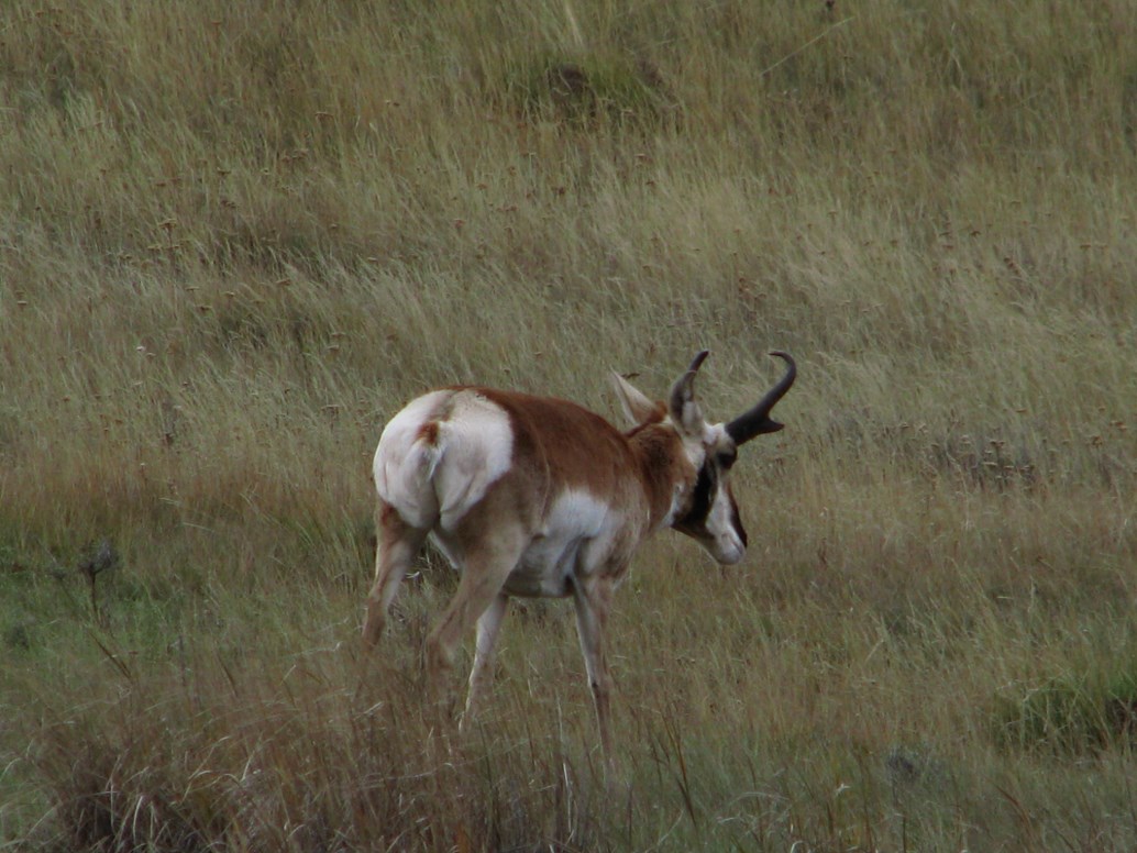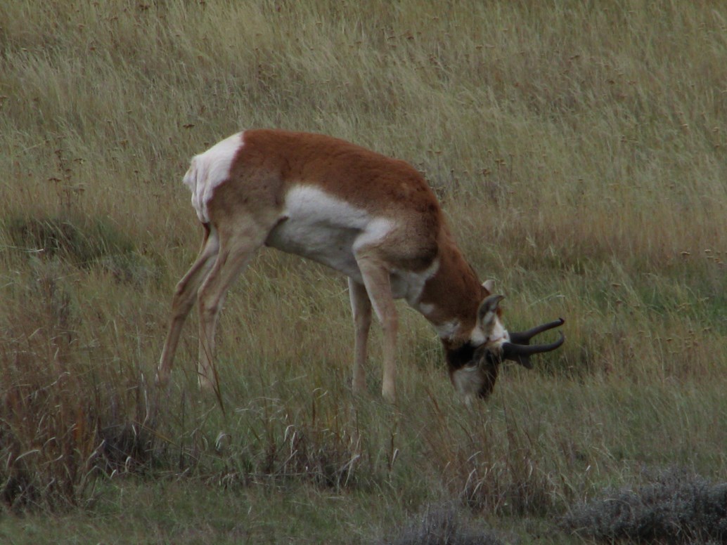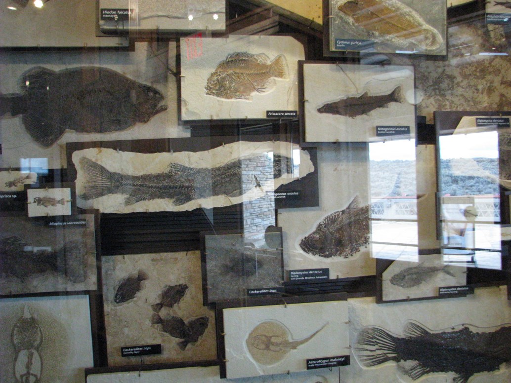 Dopo la colazione al Comfort Inn partiamo alla volta del Fossil Butte National Monument, dove arriviamo dopo circa un'ora, nel frattempo lungo la strada abbiamo incontrato un branco di antilocapre o pronghorn come le chiamano qui. Al visitor center troviamo un ranger (John Collins) davvero simpatico che ci spiega la storia del Fossil Butte che viene anche chiamato l'acquario americano nella pietra. 55 milioni di anni fa qui c'era un lago, all'epoca il clima era subtropicale, quando il lago è sparito, la successiva sedimentazione in un periodo di 2 milioni di anni ha consentito la formazione di una quantità enorme di fossili, pesci, pipistrelli, coccodrilli, palme, fiori, insetti ecc... (è dal punto di vista paleontologico  il più grande archivio acquatico al mondo per il cenozoico). Il ranger ci porta poi all'esterno per mostrarci centinaia di cervi che pascolano tranquilli a circa 1 km dal visitor center, chiedo info sulle antilocapre e mi spiega che è l'animale terrestre più veloce al mondo dopo il ghepardo, può raggiungere i 100 km/h (confermato anche da Wikipedia).