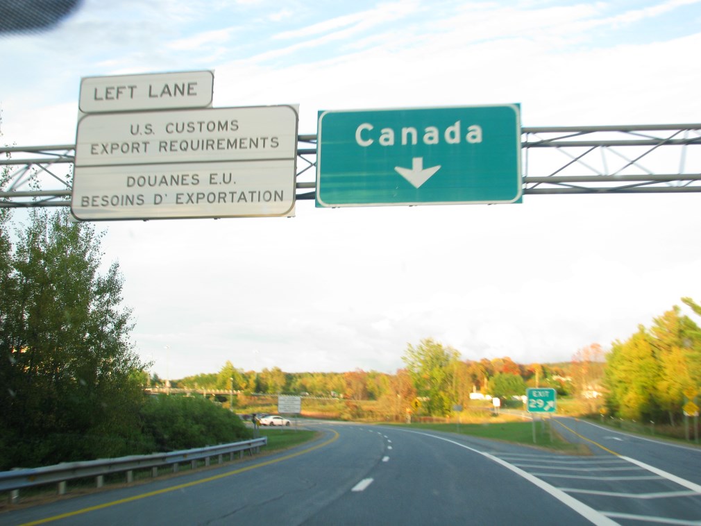 Riprendiamo la strada che ci porterà in mezzo a foreste bellissime fino al confine col Canada, ci fermiamo solamente verso le 15.00 per un panino da Subway. Arriviamo al confine col Canada verso le 17.00, il poliziotto dell'immigrazione si complimenta per il mio francese, è molto cordiale, si chiama Roy, ci chiede per quanto tempo resteremo in Canada e se portiamo regali a conoscenti.