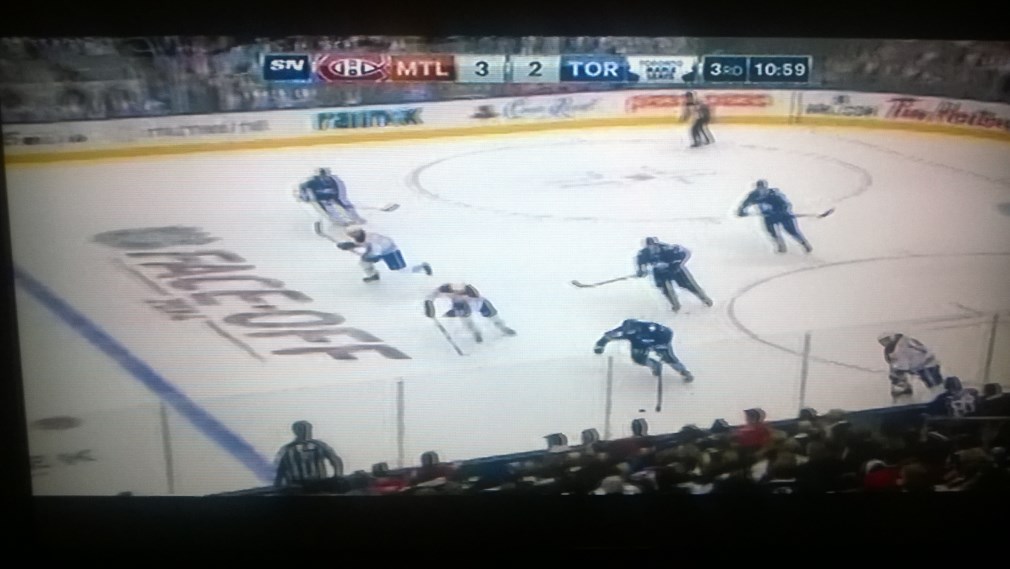 Andiamo poi in camera per vedere gli ultimi 40 minuti della prima di campionato di Hockey tra i Canadians di Montréal e i Toronto Maple, vinceranno i Canadians per 4 a 3 a pochi secondi dallo scadere.