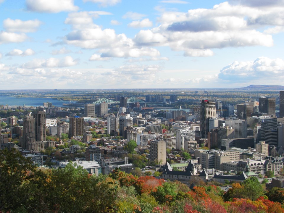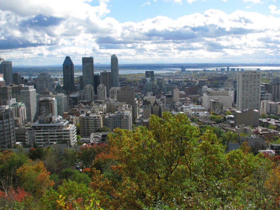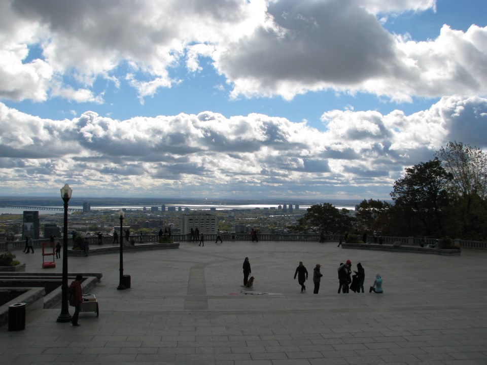 Di conseguenza dopo la sveglia all'alba e la rapida colazione eravamo già poco dopo le nove in centro a Montréal, prima cosa siamo saliti sulla collina che domina la città (il Mont Royal) con i suoi 234 metri, la vista da lì è stupenda (tra l'altro poche settimane fa abbiamo rivisto il film "FBI Protezione testimoni" con Bruce Willis e una scena era proprio girata dal belvedere del Mont Royal). Restiamo più di un'ora a Mont Royal, dopodiché scendiamo in città, nella Vieux Montréal, la città vecchia, davvero molto carina, con molti ristoranti e negozi. Il tempo cambia rapidamente se alle 10.00 c'era un bel sole, alle 13.00 piove molto forte.