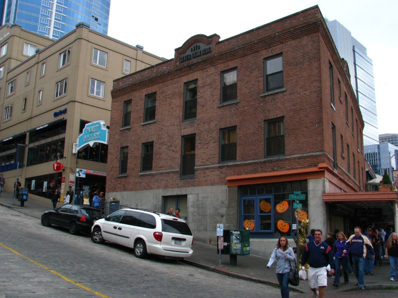 Prima cosa che andiamo a vedere è il Park Pie Market, uno storico mercato situato nella downtown di Seattle, dove ci sono degli enormi banchi di pesce (la caratteristica è il lancio del salmone acquistato, che un commesso lancia all’altro in stile lancio palla da football) dove si trovano enormi salmoni, granchi ed ogni altro pesce o crostaceo del Pacifico. Nel mercato si vende di tutto ma il bello è guardare i pesci ed i fiori. All’interno dell’edificio che ospita il mercato ci sono moltissimi negozietti, si va dal negozio specifico in gadget relativi a cani e gatti, al negozio che vende riviste vintage compresi vecchi numeri di Life e Playboy, negozi che vendono spezie, statue, sculture, riproduzioni in cartone di attori ed Obama ecc… una babele di negozi.