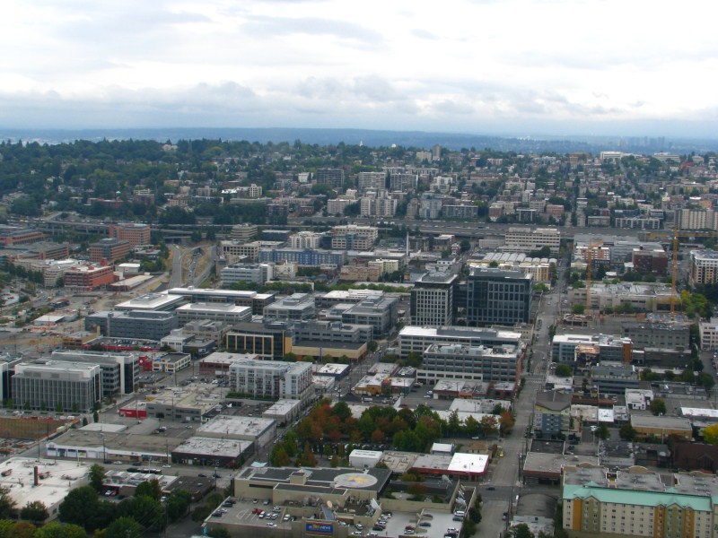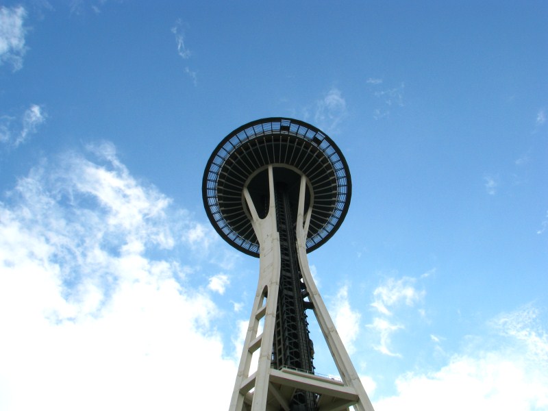 Dopo la visita al Museo, visto che ha smesso di piovigginare  e sembra fare capolino il sole, torniamo nella downtown nord (altro parcheggio stratosferico) e saliamo sulla Space Needle Tower, una torre alta 184 metri dalla quale si gode di una vista strepitosa sulla downtown e su tutta Seattle, da lì si potrebbe anche vedere il Monte Rainier. Scesi dalla torre partiamo alla volta di Redmond, cittadina situata a circa 50 km da Seattle ed andiamo a vedere la sede della Microsoft (per trovare l’indirizzo entriamo nel parcheggio di un motel e ci colleghiamo alla sua wifi col nostro portatile) ed il suo centro di ricerca, ah si dimenticavo, sotto la torre abbiamo visto (da fuori) la fondazione di Bill Gates.