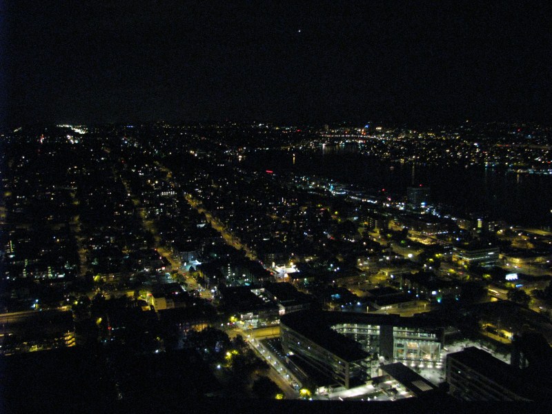 Dopo la cena, visto che avevo acquistato i biglietti Night & Day (scritto Nite…) risaliamo sulla torre dove possiamo ammirare la downtown in tutta la sua bellezza di migliaia di luci, quello che mi chiedo è: considerato che è sabato e gli uffici sono chiusi, chi sacrifica la propria bolletta della luce per accendere le luci e permettere di fare le foto ai grattacieli di notte? Misteri Usa…