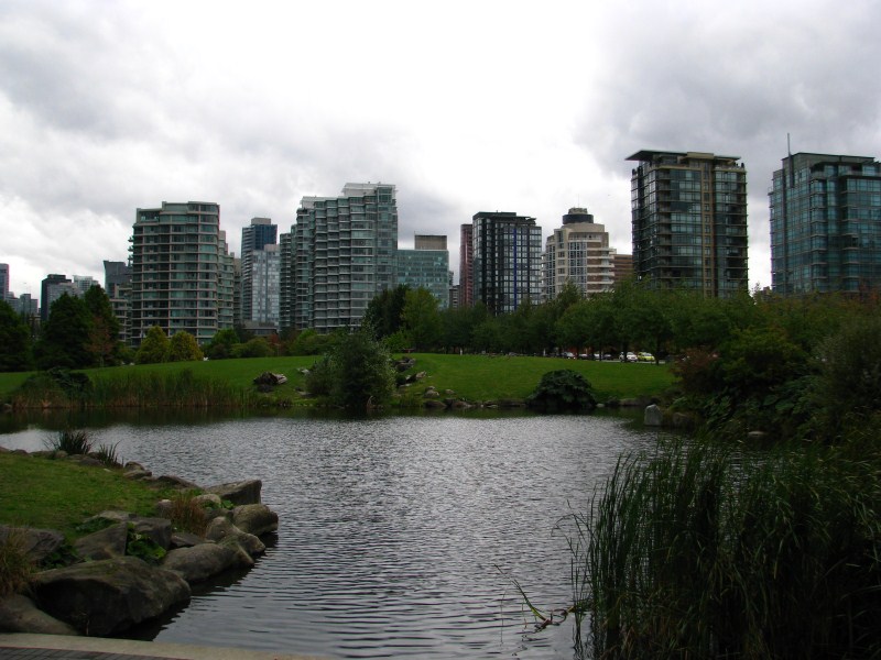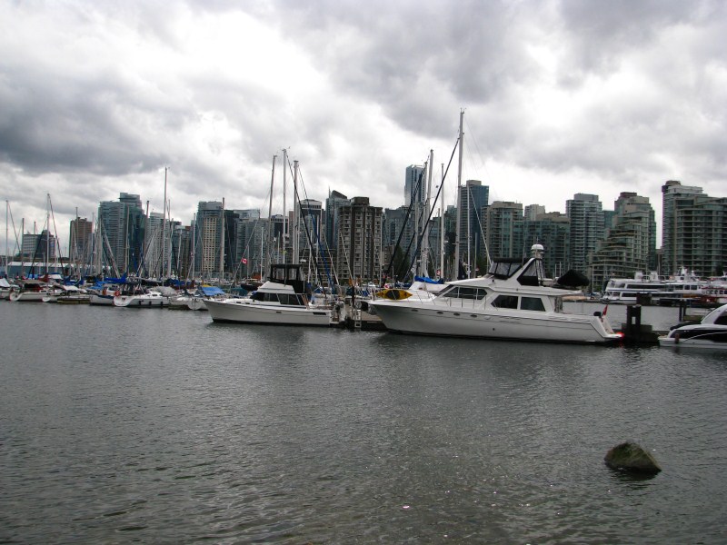 Giornata dedicata interamente alla visita di Vancouver, dopo la colazione al Best Western di Richmond raggiungiamo in 15 minuti il centro di Vancouver, 10 km si percorrono in fretta, tutti i semafori sono sincronizzati. Parcheggiamo vicino alla torre Lookout e percorriamo a piedi Georgia Street in mezzo ai grattacieli fino al Stanley Park, una camminata di almeno 3 ore tra andata e ritorno. La città oggi ci sembra più bella, i grattacieli più lussuosi, in realtà come scritto ieri molti di questi sono abitazioni con tanto di balcone.