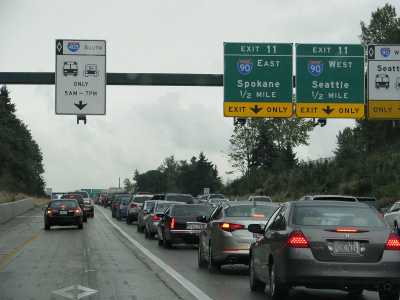 Lungo l'autostrada le code in uscita da Seattle sono interminabili e sono solo le 4 de pomeriggio, deduco che qui finiscano presto di lavorare, anche nel nostro senso di marcia c'è traffico, tuttavia essendo in 2 in auto, possiamo utilizzare la corsia del car pooler, e sfrecciare indisturbati saltando le code (incredibile come la gente rispetti questa regola, pensare che da noi c'è gente che va sulla corsia d'emergenza).