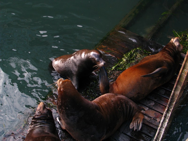 Da lì sentiamo poi il tipico verso dei leoni di mare, scendiamo di qualche centinaio di metri ed arriviamo ad una sorta di Pier 39 di San Francisco, un molo con un sacco di leoni di mare che riposano beatamente su delle assi di legno e litigano (solo a versi) se qualcun altro vuole salire sulle assi, c’è anche una sorta di gabbia, che serve ad imprigionare i leoni di mare nel caso in cui i ranger vedano che sono magari feriti o soprattutto per togliere eventuali rifiuti che possono provocarne la morte (corde ad esempio).