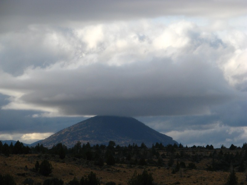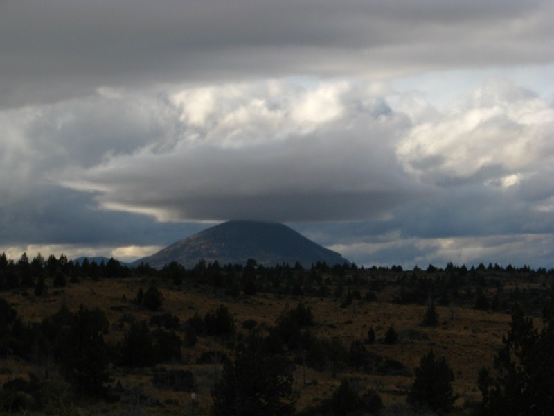 La perturbazione ci concede un break, il cielo si apre e possiamo ammirare un cielo azzurro solcato da nuvole basse e soprattutto da una lenticolare sopra un cono vulcanico, tipo quelle che si formano sul Monte Rainier o sullo Shasta (quest’ultimo un vulcano vicino alle Lava Beds che si eleva fino a quota 4317 metri. Restiamo stupiti dal tramonto, cielo azzurro, nuvole scure, arcobaleno, sole che illumina un vulcano, alberi che assumono colorazioni intense, solo questo tramonto valeva la vacanza, ho scattato foto tra le più belle che abbia mai fatto.