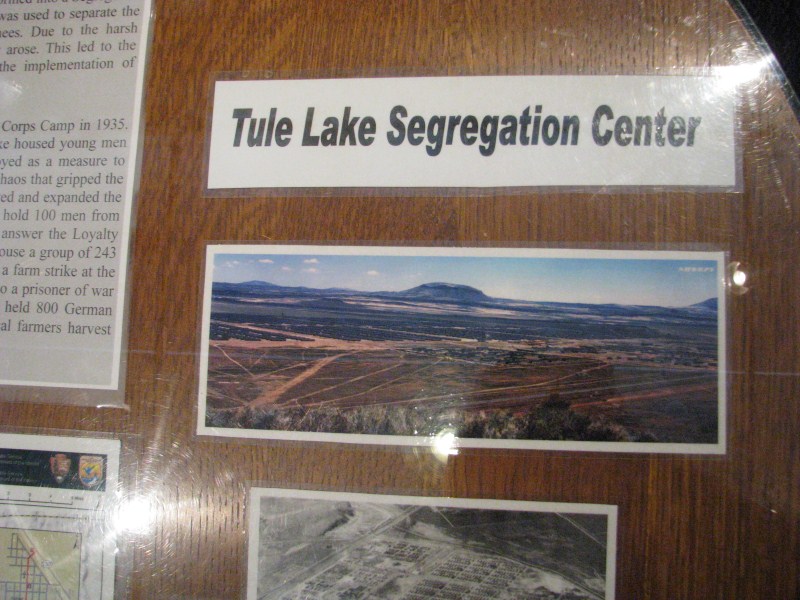 Scopriamo nel Visitor Center uno che anche qui gli indiani sono stati cacciati, ci sono state aspre battagli con loro e addirittura sono stati usati dei mortai per combatterli, ma la cosa più stupefacente è che in questa zona vicino al lago Tulelake c'era un centro di segregazione di giapponesi, qui erano "ospitati" circa 19.000 dei 120.000 giapponesi portati negli USA dopo l'attacco a Pearl Harbor (vedi un paio di foto).