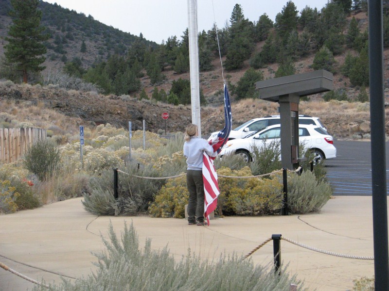 Il lago (ho chiesto al Ranger) non ghiaccia praticamente mai, l’ultima volta fu nel 1949, la zona è molto nevosa, sono caduti l’anno scorso oltre 15 metri di neve. Dopo aver guardato un video sul Crater Lake nel Visitor Center, ripartiamo (piuttosto avviliti) verso Klamath Falls, lungo la discesa dal Crater Lake ci fermiamo a vedere delle fumarole fossili.