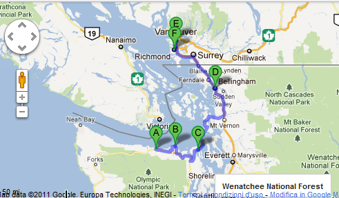 3 ottobre: Port Angels – Port Townsend – Vancouver (Canada) km 300 – km totali USA 920