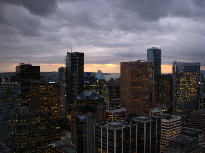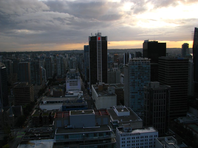 Percorriamo la strada principale di Gastown e ci teniamo ben stretti i nostri portafogli e zaino viste le facce poco raccomandili. Dopo aver acquistato un po’ di ricordi in un negozio tipico canadese gestito da cinesi, saliamo sulla Vancouver Lookout, una torre alta 169 metri nel cuore della downtown, da lì possiamo ammirare un bel tramonto (ha fatto capolino il sole giusto per noi) e restiamo lì almeno un’ora e mezza aspettando che faccia buio per vedersi illuminare i grattacieli e la città delle luci della notte, possiamo così scattare delle foto indimenticabili.