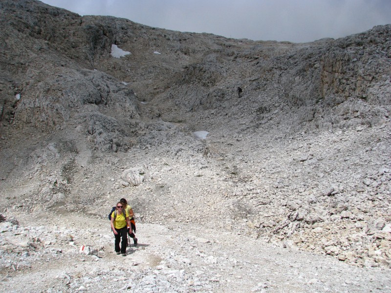 Dal versante risaliamo verso sud dove ci fermiamo ad osservare dei bellissimi coralli fossili, per poi rientrare al rifugio Pedrotti dove troviamo una ressa incredibile (c'era una comitiva di ben 70 persone).