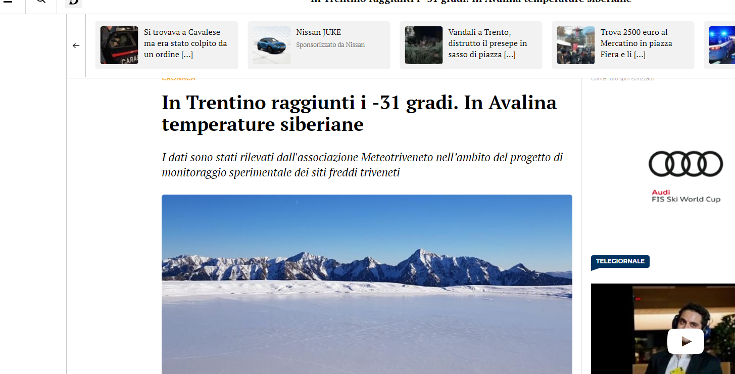 Articolo che fa seguito al comunicato stampa relativo alle temperature rilevate ad Avalina, clicca qui per leggere