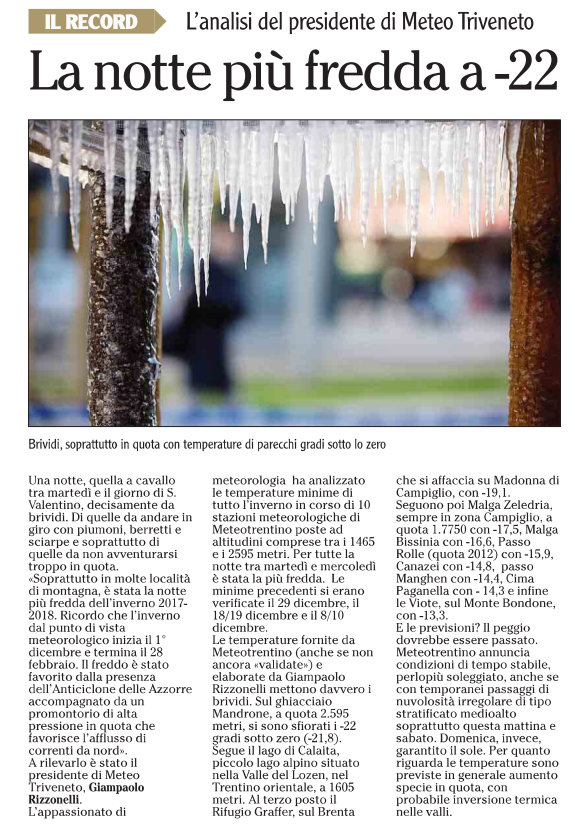 Articolo che fa seguito al comunicato stampa relativo alla notte più fredda dell'inverno.