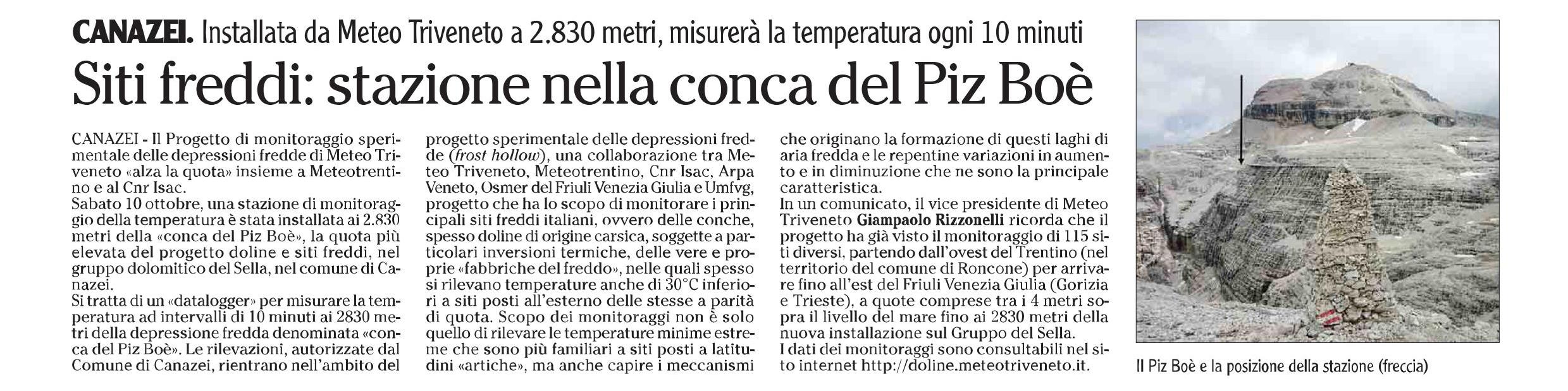 Articolo uscito sul quotidiano L'Adige seguito il comunicato stampa di Meteo Triveneto per l'installazione effettuata in collaborazione con Meteotrentino e il CNR/Isac sul Gruppo del Sella.