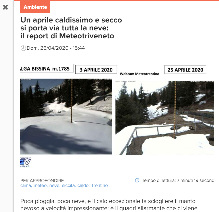 un aprile caldissimo e secco si porta via tutta la neve